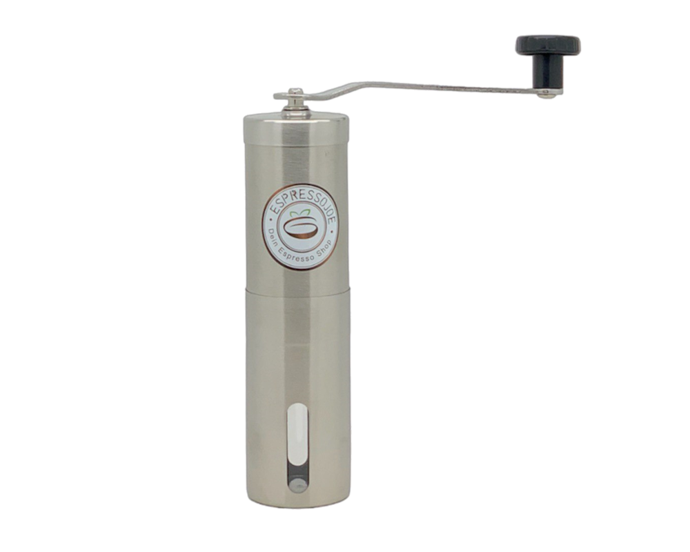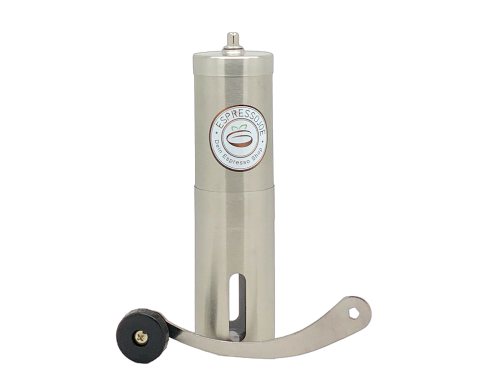 Die Handmühle hat eine konische Keramik Mahlscheibe und einen abnehmbaren Griff. Sie hat ein kleines Sichtfenster auf der Seite, in dem Sie die gemahlene Menge Kaffeepulver mitverfolgen können. Die Handmühlefasst etwa 40g Bohnen. Der Mahlgrad ist natürlich einstellbar. So können Sie ganz nach Laune entscheiden, ob Sie Ihren frischen Espresso im Herdkocher, Siebträgeroder in der French Press zubereiten möchten. Wählen Sie für den Siebträger den feinsten Mahlgrad, für Ihre French Press den gröbsten und für den Herdkocher einen mittelfeinen Mahlgrad.