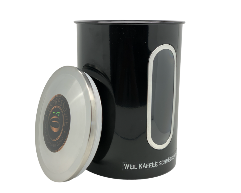 Ob für die Küche zu Hause oder das Büro – die JOEs L Edelstahl Kaffeebohnendose ist die praktische Lösung für Kaffeeliebhaber, die nicht gleich eine XL-Dose brauchen. Hergestellt aus schwarz beschichtetem Edelstahl und veredelt mit einem Deckel aus gebürstetem Edelstahl samt EspressoJoe-Siegel, überzeugt sie mit schlichter Eleganz. Durch das große Sichtfenster behältst du den Vorrat stets im Blick. Mit 2,5 Litern Volumen nimmt sie bequem 850 g Bohnen oder 1 kg gemahlenen Kaffee auf – perfekt, um eine Standard-Kaffeetüte nachzufüllen und frisch zu halten.