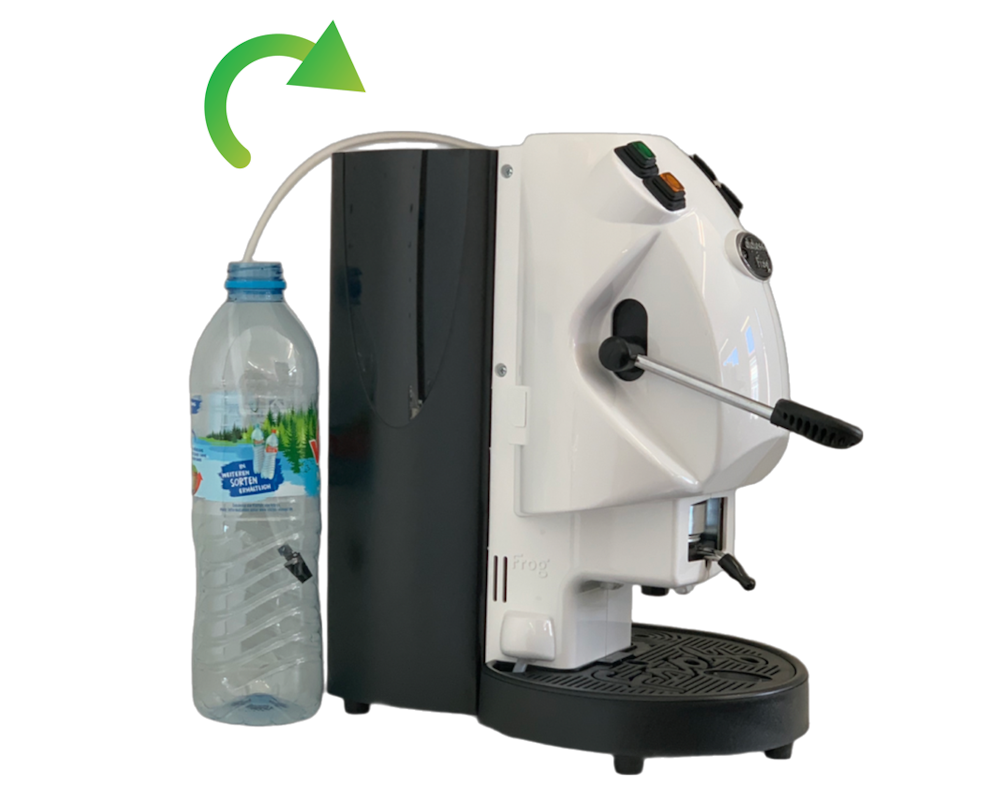 Mit der Didiesse FROG Espressomaschine entfällt lästiges Umfüllen von Wasser. Einfach eine 1,5-Liter-Flasche Ihres Lieblingswassers direkt in den Wassertank stellen und schon kann der Kaffeegenuss beginnen. Die Maschine ist speziell für 44mm ESE Pads (Cialde oder Pods) konzipiert. Der Griff, der eine stilisierte Kaffeebohne zeigt, dient zum Pressen des Pads – für optimalen Druck und besten Geschmack. Ein Tipp: Nach dem Brühvorgang das Pad sofort entfernen und ab in den Biomüll. Zusätzlich erhalten Sie 50 ESE Pads als Geschenk, um sofort den perfekten Espresso zu genießen!