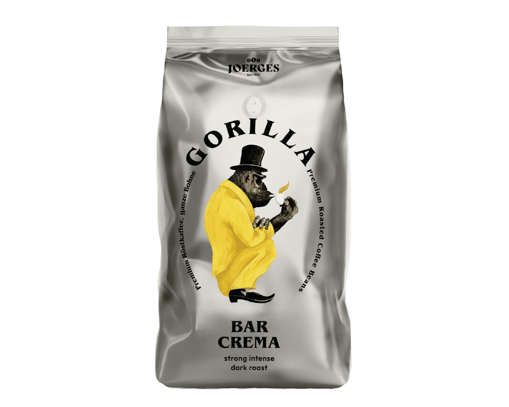 Gorilla Kaffees zeichnen sich durch eine hochwertige Bohnenauswahl und laufend kontrollierte Röstungen aus. Die Marke der frankfurter Traditionsrösterei A. Joerges blickt auf handwerkliche Erfahrung und lokale Geschmackskompositionen zurück, die besonders begeisterte Kaffeegenießer hier in Deutschland schätzen. Mit der Sorte Gorilla Bar Crema genießen Sie einen anhaltend intensiven Kaffee mit sehr starkem Koffeingehalt, der schon morgens den Geist belebt und den Tag geschmackvoll einläutet.