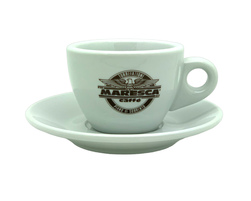 Diese Cappuccino Tasse unterstreicht Ihren stilvoll, traditionellen Kaffeegeschmack. Hier finden die leicht rauchigen Maresca Mischungen die perfekte Bühne. Seitlich von dieser original italienischen Cappuccino Tasse befindet sich, unübersehbar platziert, das berühmte Maresca Logo mit dem Adler. Der Adler ist für Maresca das Symbol für das beständige Streben nach höchsten Zielen, beste Bohnenauswahl und sorgfältige Röstungen nach alter Tradition.