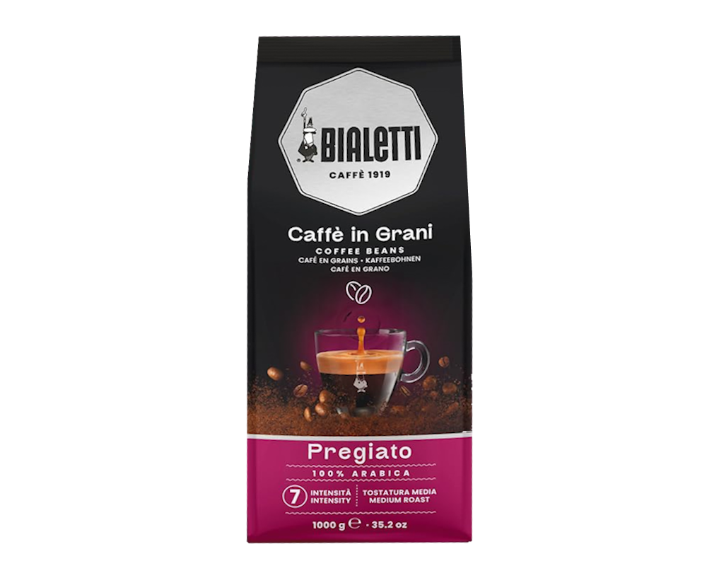 Die ganzen Bohnen des PREGIATO entfalten ihr volles Potenzial im Siebträger oder Vollautomaten – ob als klassischer Espresso, sanfter Cappuccino oder milder Caffè Lungo. Dank der 100% Arabica-Basis enthält der Kaffee weniger Koffein, ohne dabei auf Geschmack oder Fülle zu verzichten. Durch die präzise abgestimmte Röstung hebt Bialetti die aromatische Tiefe und Eleganz dieser Bohnen hervor. PREGIATO steht für raffinierten Kaffeegenuss, italienische Handwerkskunst und spürbare Qualität mit jedem Schluck.