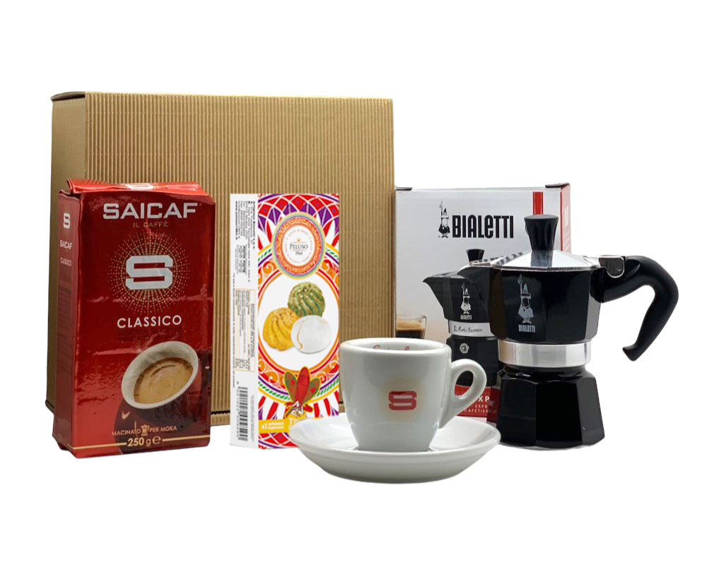 Saicaf Caffé Geschenkset, mit schwarzem Bialetti Kocher